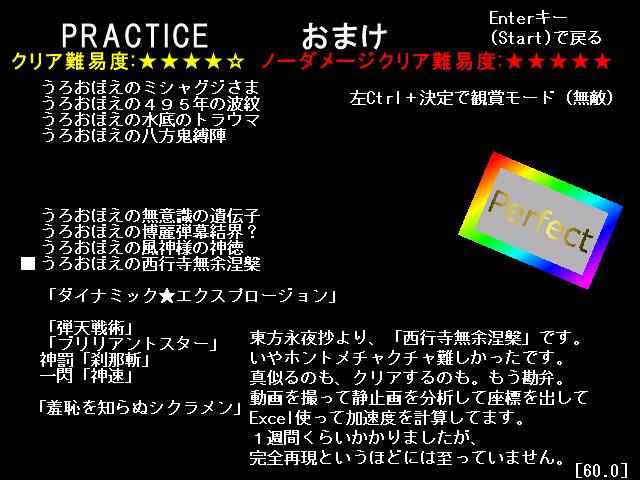 「うろおぼえの西行寺無余涅槃」のPerfectを達成しました。