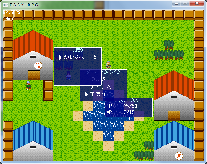 あと違うところは、winmng_SelectMenu()で魔法が選択されたときの処理がparty_useMagic()に全て頼っていることです。その他は、メニューアイテムと同様です。