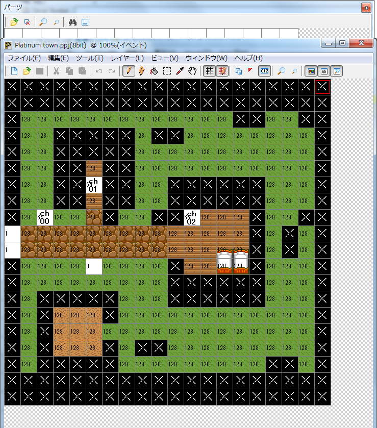 3.イベント設定レイヤー。キャラクタの発生ポイントやイベントの発生ポイントを指定します。