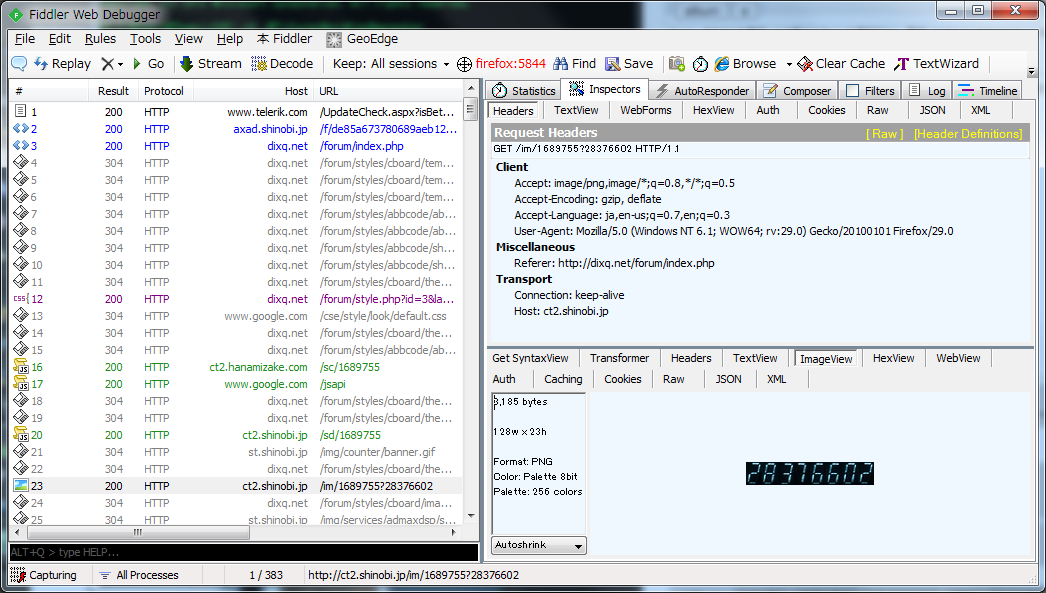 fiddlerで調べると、shinobi.jpにアクセスしているようです。