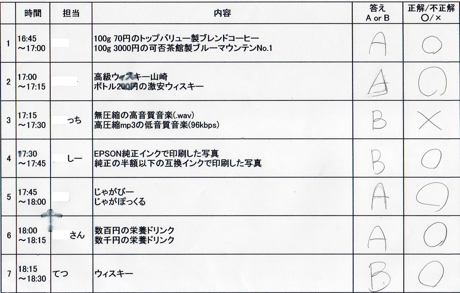 例えば、g70円のコーヒーとg3000円のコーヒーをAとBというカップに隠して出して当てられるか!?