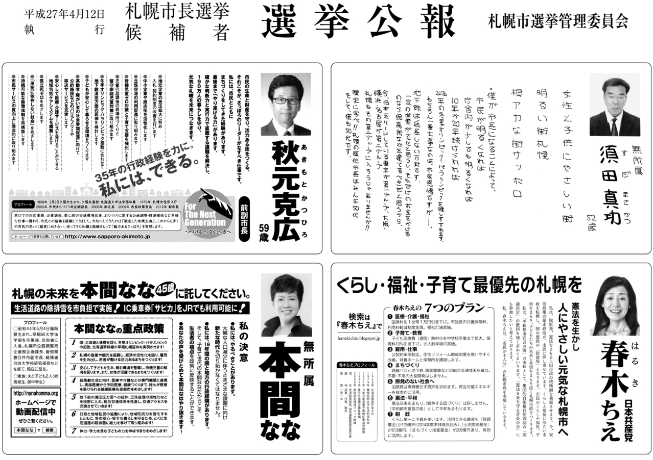 選挙公報読むだけでも一苦労で,支所単位で選挙区分割してくれればいいのに,と思ってしまいます……。