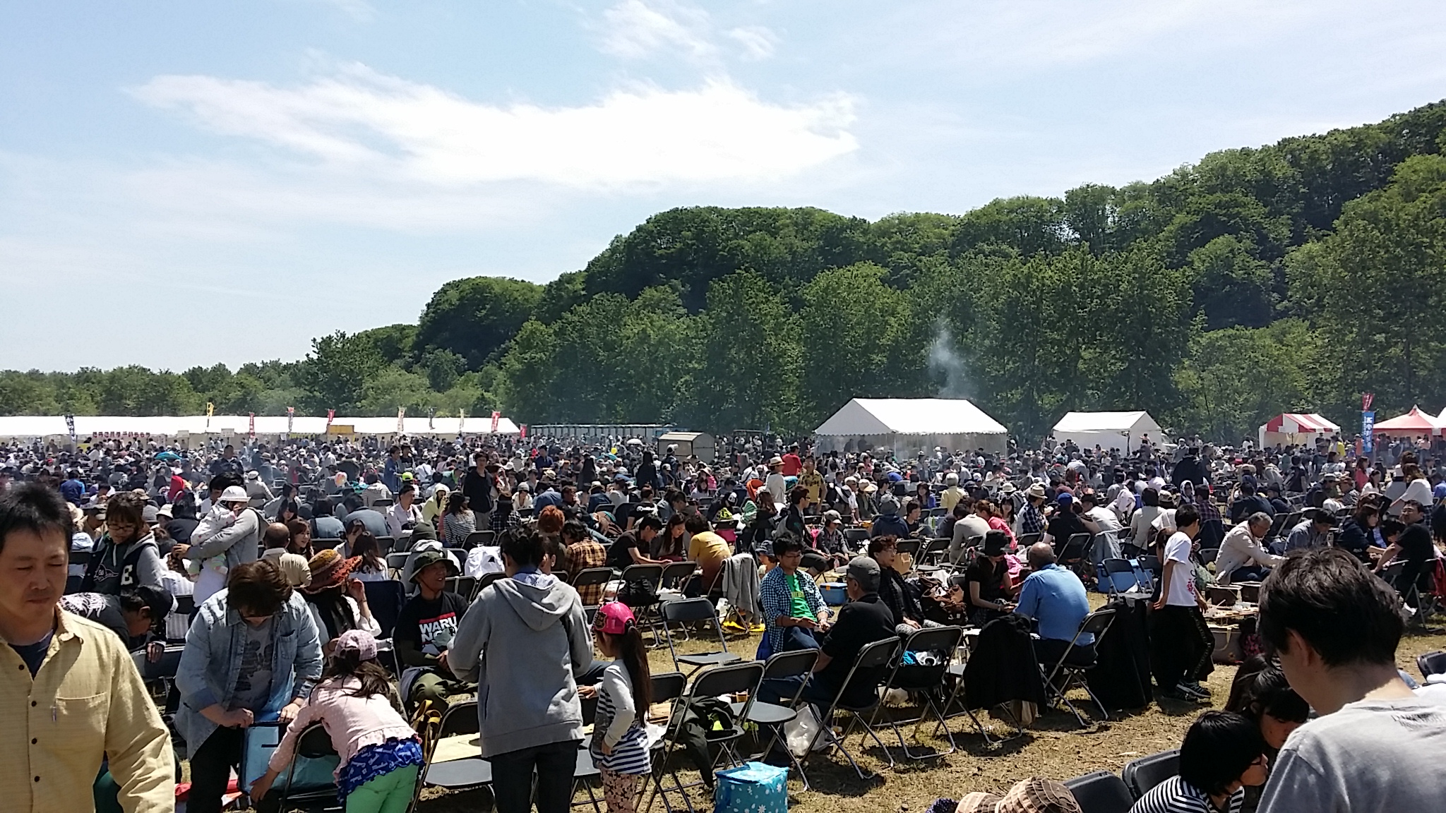 すごい人で白老ICからすげー渋滞。やっとの思いで場所取りしてくれてる後輩の場所に到着