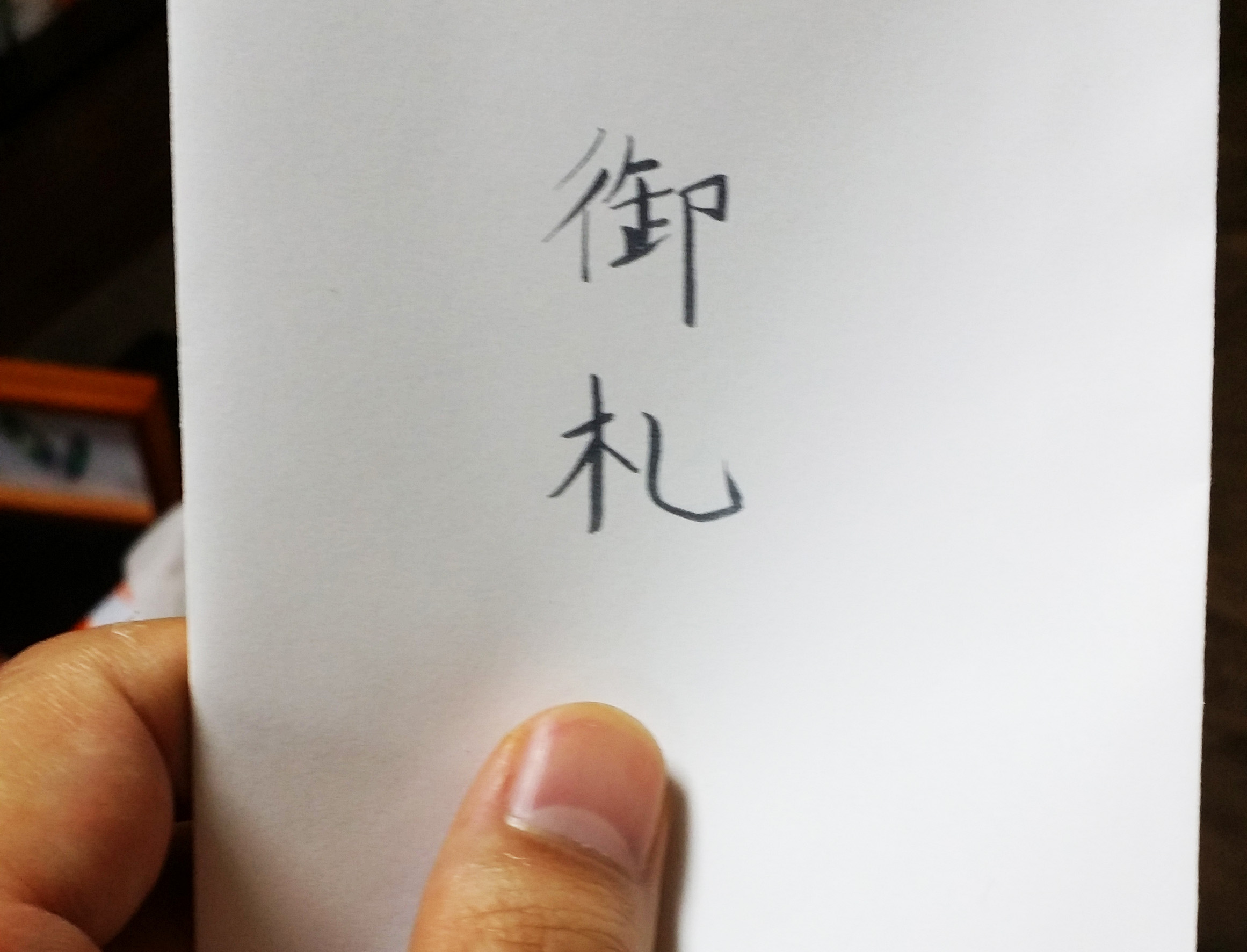 嫁に「なんだかこれおふだに見えない?」というと嫁に