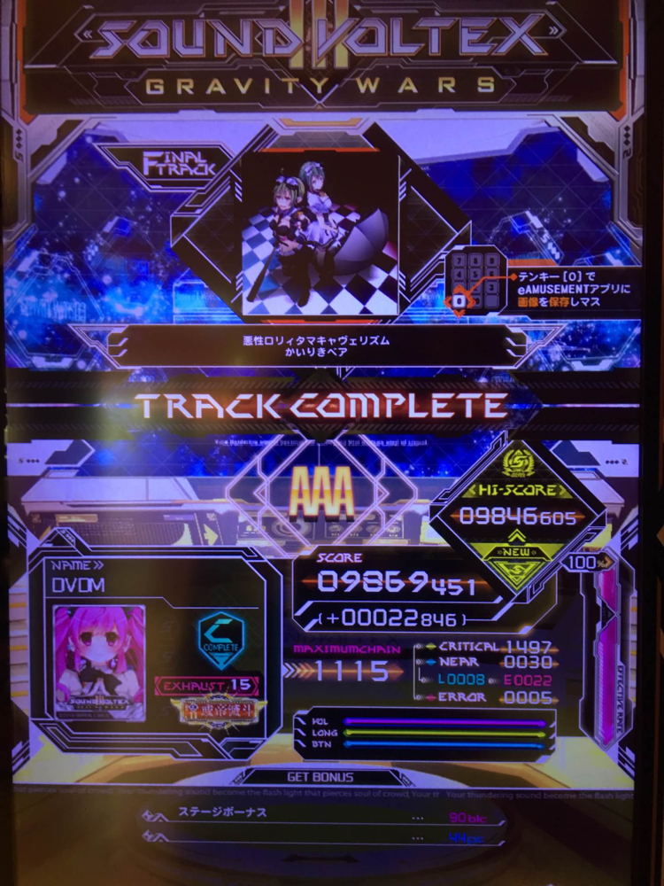 SOUND VOLTEX 今のメイン機種ですが、或帝滅斗 後光 取得。