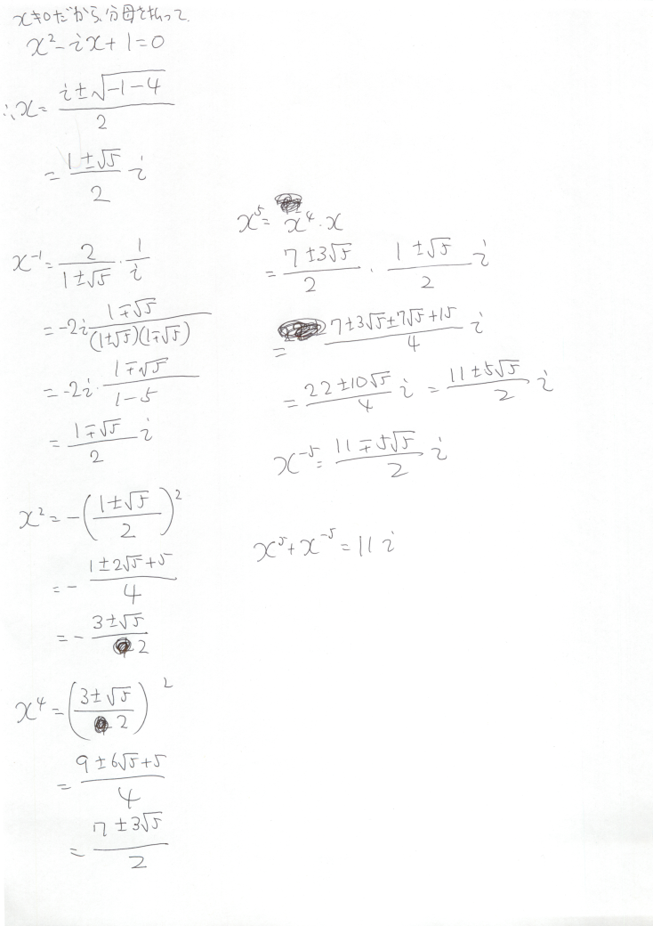 私のも一応答えはあってたものの二項定理まで使ってバカ正直に5乗の展開するなんて