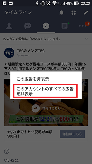 長らく消す方法が無いと言われていたLINE公式の広告ですが、消す方法がありました。
