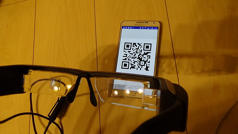 本アプリはAndroid版で目的地を設定し、それをQRコードに変換し、Moverioに取り込む機能を搭載しています。