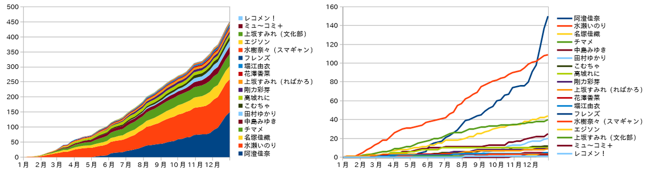 11月までは水瀬いのりがトップだったのに、終盤でヤケになって投げまくった結果阿澄佳奈が怒涛の追い上げを見せ、抜いてしまいました。
