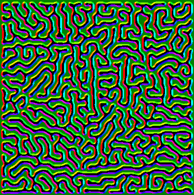唐突に いわんさんの迷路作成ソフト で作った絵の壁の法線方向を色分けしてみた.