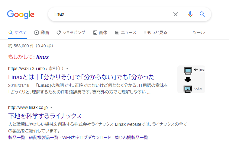 linaxで検索すると、もしかしてlinuxがでる