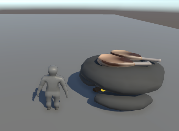 頂点が多くないと高さで焼き色付けてもあんまりきれいにならなかった。のでノイズと凹凸を付けた。