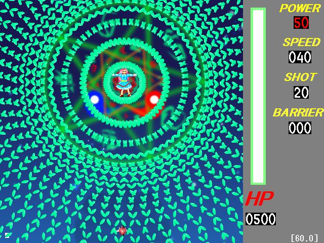 しかしこのミシャグジ様弾幕(下の画像)、弾の数がちょっとヤバいですね。(笑)