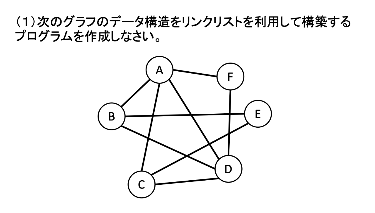 読み込みは終わったのですが、リンクリストを無向グラフ?にする方法が分かりません。提出期限がもうギリギリなので教えて欲しいです。