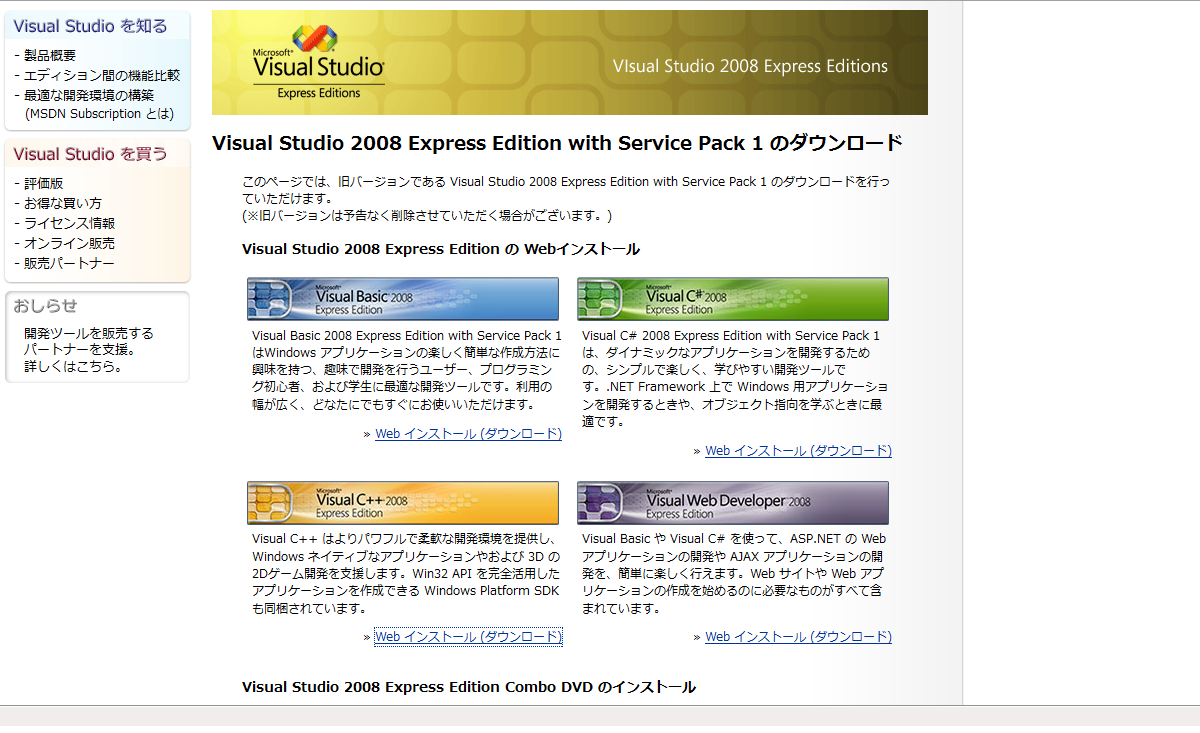 VisualStudio 2008 ExpressEdition (言語別)