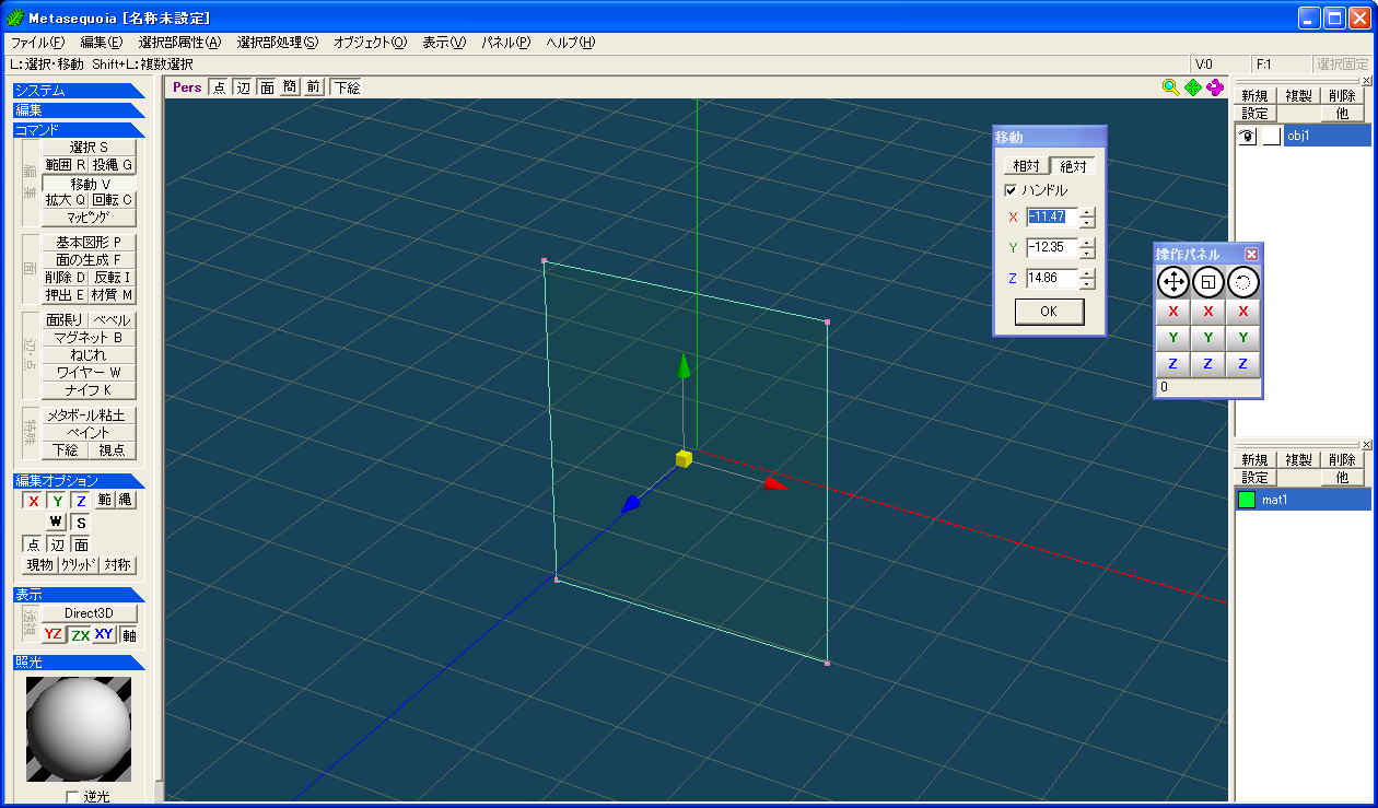 メタセコイア製の板ポリゴンを読み込んでいます。(材質設定は参考画像1を参照してください。)