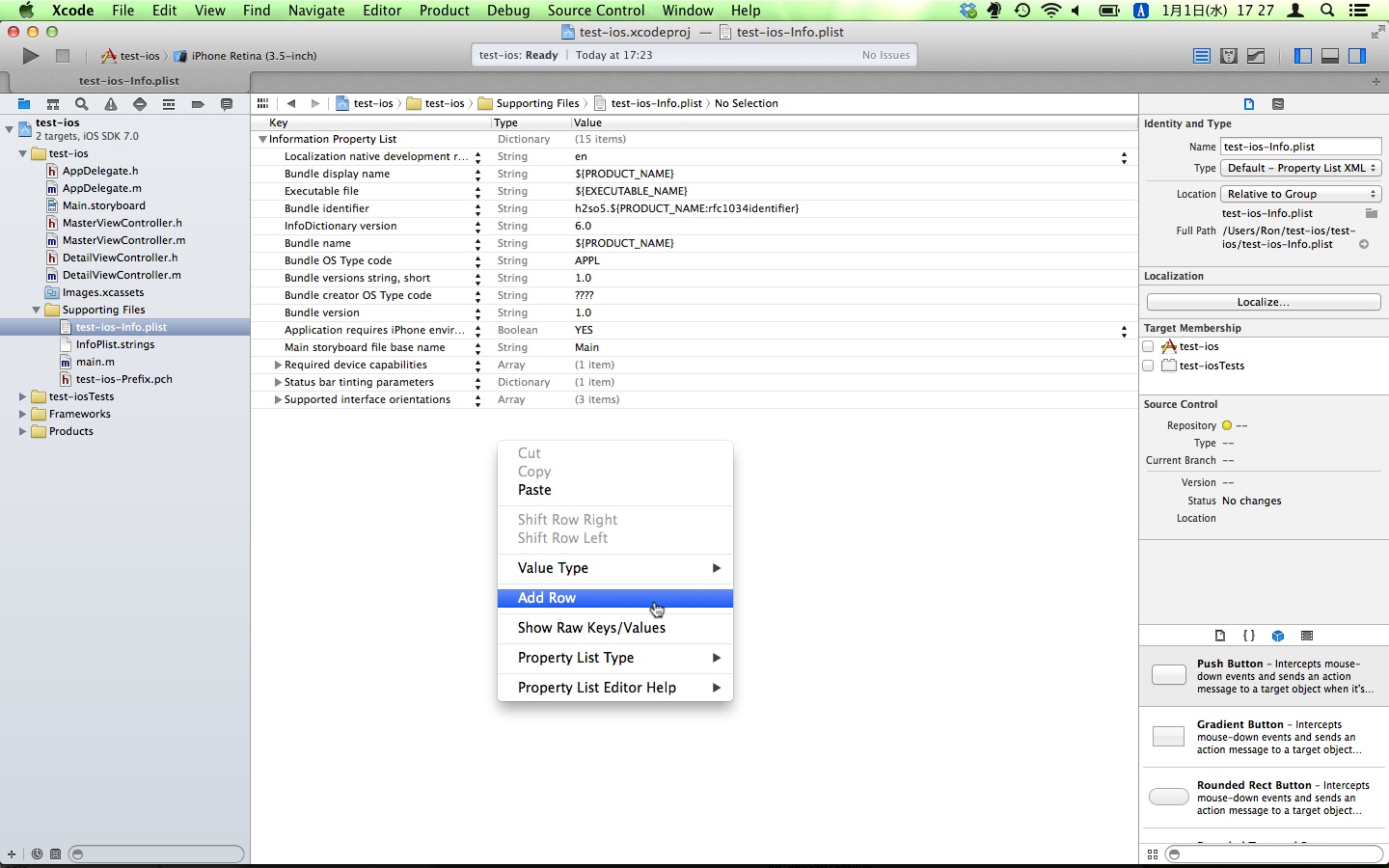 Custom iOS Target Properties の画面までは行けるのですが、Keyを新たに設定する方法が分かりません。