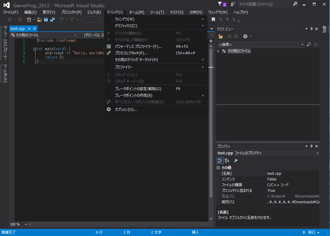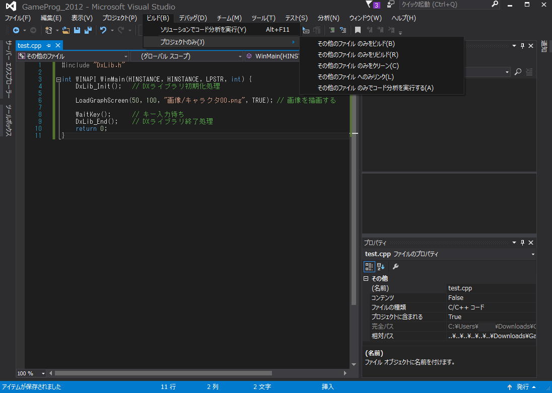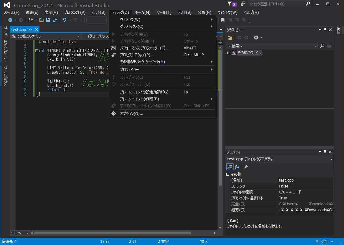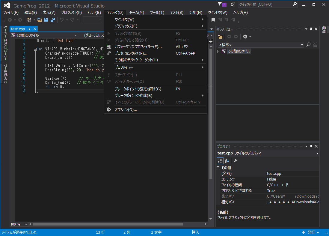 フォルダ名は"GameProg_2012"