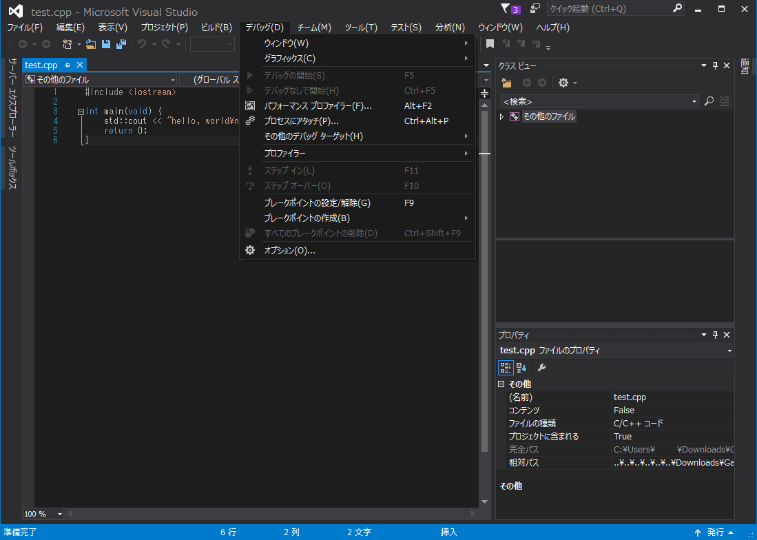 「新・ゲームプログラミングの館」で勉強し始めました。VC++2015と、Visual studio Community 2015 with update 2をインストールしました(されてました)。GameProg_2012.slnというファイルがこれで開けるようになっていたので起動して、練習用のプログラム(test.cpp)も読み込んで、Ctrl+F5を押したら、何も起こりませんでした。ウィンドウは生成されませんでした。「デバッグなしで開始(Start Diagnotice Tools Without Debugging)」も設定していました。