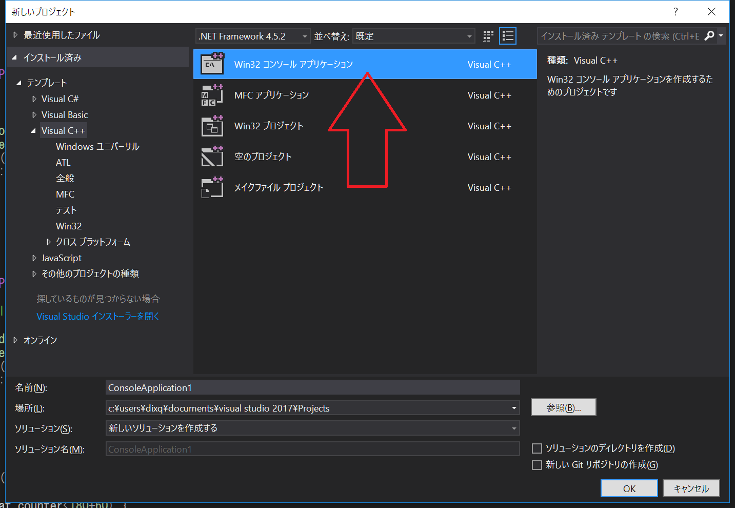 Windows10,VS2017Cmmunity,Win32Console Project,x64を使用