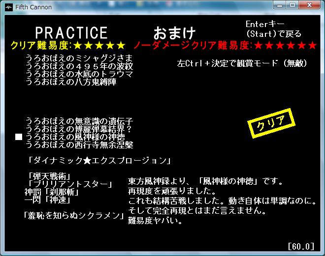 そしてプラクティスモードですが、おまけに関しては1発でアウトという機能をつけようかと考えたことがあります。