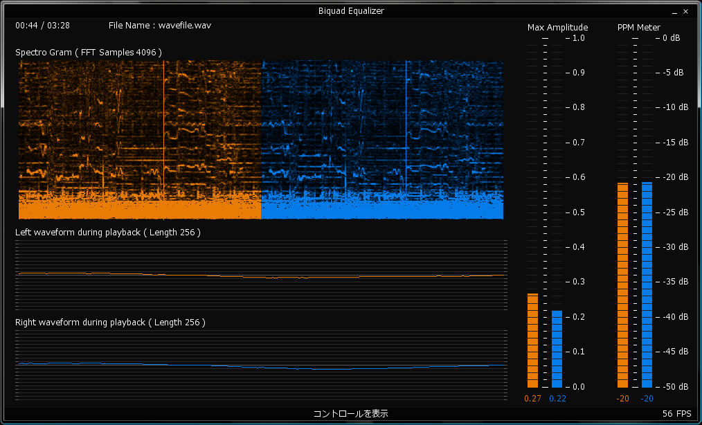 アルファ1の名残で起動時はwave.wavを読み込むが、ドラッグ&ドロップで別の.wavファイルを再生